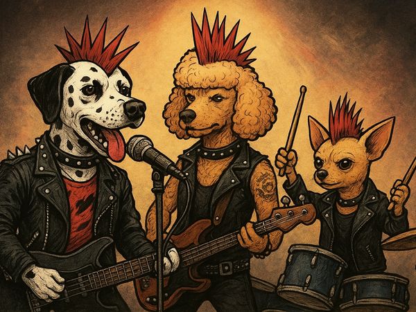 Wie geil ist das denn – einfach mal auf eBay gescrollt, und da war er: unser Drummer, auf der Suche nach einem Raum zum Üben. Durch die Energie beim Moshpit und das frühere Pitgirl-Projekt unserer Songwriterin Sta kam der Kontakt zu Nico am Bass zustande, und ein paar Monate später stehen wir hier – bellend und beißend am start ;) Pit Dogs aus Marburg.